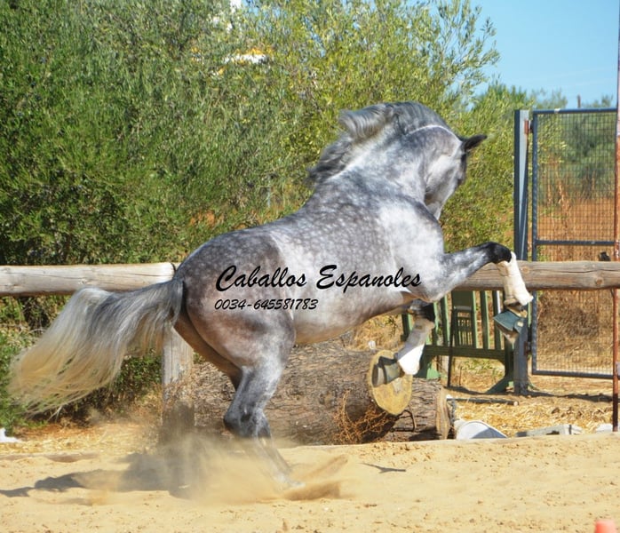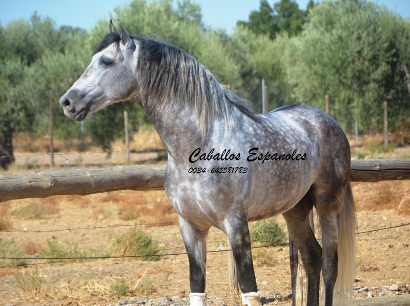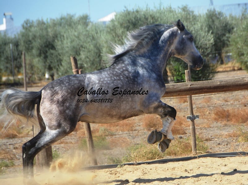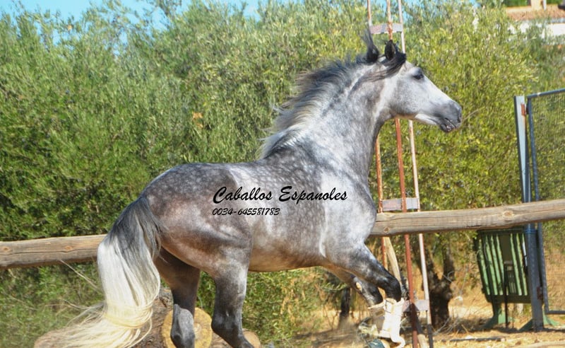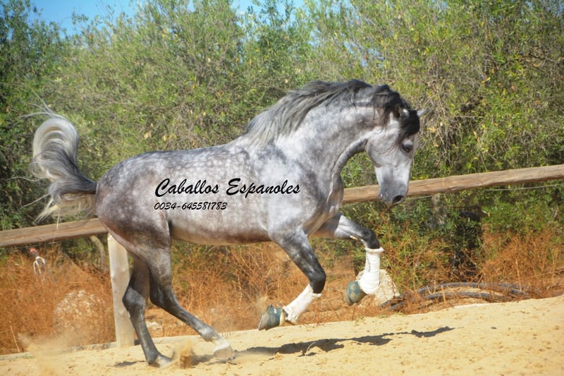 Przepiękny ogier PRE w barokowym typie. Ogier posiada trzy dobre podstawowe chody. Jest posłuszny w obsłudze i dobrze ułożony. Jeźdzony jest we wszystkich trzech podstawowych chadach, zarówno w terenie, jak i na maneżu. W zeszłym roku zaprezentowano go na SICAB, gdzie pokazał się z bardzo dobrej strony. To wspaniały ogier, który przy odpowiednim wsparciu może się znacznie rozwinąć. Rodowód: Moreno de la Cova Koń jest sprzedawany na zlecenie. Możliwość dalszej nauki u nas. Wkrótce zostanie zorganizowany AKU. Transport międzynarodowy.