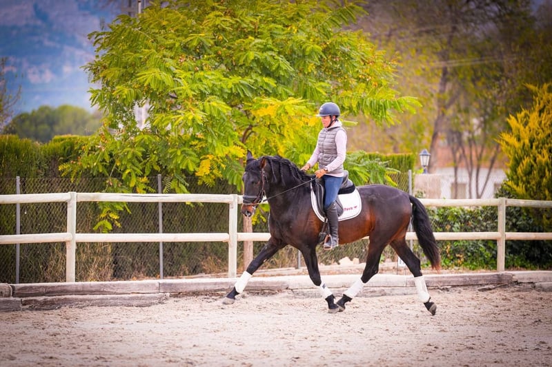Ridered: PRE Ragnar is a 3.5 year old, licensed, dark bay PRE (Pura Raza Española) stallion who has been ridden under saddle for two months. With a very good pedigree, Ragnar stands out for his outstanding movements, which indicate great potential in dressage. His training under saddle has only recently begun, which means that he is still in the early stages of his dressage development. Despite his youth, he is already showing promising approaches, especially in his gait quality and movement dynamics. Ragnar has a full X-ray, which is important for potential buyers or riders to get an insight into his health. His dark brown coat color gives him a striking appearance, and his good pedigree suggests a high genetic quality and predisposition to dressage. As a PRE, he probably possesses the characteristics typical of this breed, such as temperament, stamina and a natural tendency to gather, which makes him particularly suitable for dressage. Overall, Ragnar represents a promising choice for riders looking for a young, talented horse with potential for a career in dressage. His previous training and health condition form a solid basis for his further development in this demanding sport.