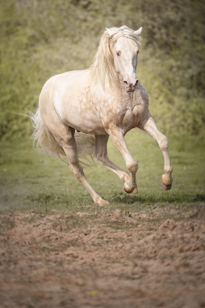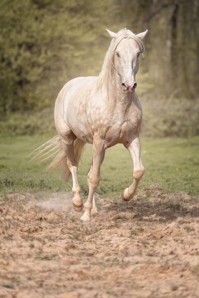 Wir bieten unseren Hengst zum Verkauf an, da wir 3 seiner Töchter/Söhne behalten haben. Es handelt sich um einen PRE Palomino Pearl (Creme/Pearl auf Fuchs-Basis - ee Aa CrPrl), negativ auf PSSM1, negativ auf Arteritis & Metritis (aktuell - letzter Abstrich März 2025). Er verfügt über eine hervorragende Genetik, die in Frankreich bei PREs selten ist; wir haben ihn für unsere Stuten behalten. Er kann alle Grundfarben in Creme oder Pearl produzieren. Er ist eingeritten und wurde über ein Jahr von einer Dressurreiterin gearbeitet (auf Anfrage). Er deckt an der Hand oder frei, lebt draußen mit seinen Stuten und Fohlen oder in Box/Paddock. Er beißt nicht, ist pflegeleicht, lässt sich gut reiten, und ist auf dem neuesten Stand.