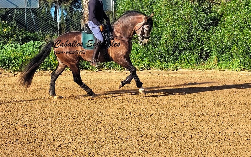 An eye-catcher, this Ponce Campano. This stallion is correct and very harmoniously built. He is equipped with 3 very good basic gaits. The young man is very well-behaved in handling, in the field and on the arena he is hard-working and content. He can do lateral movements and is working on his piaffe and canter changes. He also already shows a nice working canter pirouette. A top horse for the ambitious leisure rider. Pedigree: Camacho Benitez, Marín García, The horse is being sold on commission He can stay with us in training. An AKU will be organized at short notice. International transportation.