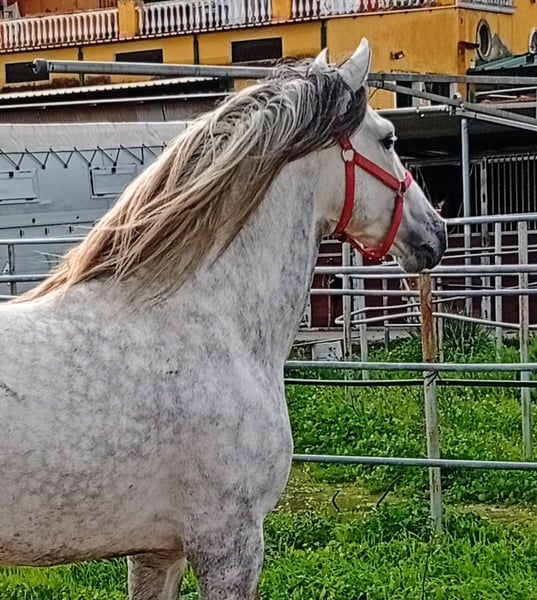 Semental con mucha nobleza que se usa para ocio, sin problema con otros caballos, ni con el tráfico. Y puede ser un gran semental, con buenos orígenes internacionales de doma clásica por el padre y la madre.