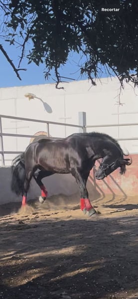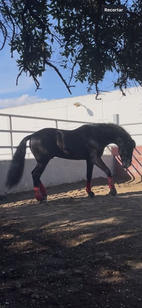 Opportunity! Son of Lladro Mar. PUREBRED SPANISH HORSE. 2019 PRE stallion standing approximately 16.1 hh, sired by Lladro Mar. This black foal has an impeccable noble temperament and a level 3 dressage training, making him an ideal horse for both arena and field. Come see him – he's a spectacular horse with natural elegance, just like his sire. We can arrange a viewing at the finca Lo Pertiguero, El Palmar, Murcia. Don't miss this chance!