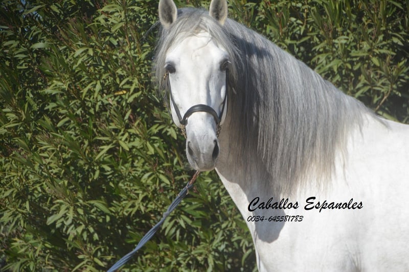 Diese klassische Schönheit besticht einfach durch seine barocke, elegante Erscheinung - der Spanier, wie er früher war. Der Hengst hat einen sehr ausgeglichenen Charakter, superbrav beim Fertigmachen. Er schaut nicht nach den jungen Hengsten, die auf der Weide spielen. Der Schimmel ist mit drei guten Grundgangarten ausgestattet, die super sitzbequem sind. Er ist in den Grundgangarten geritten, Seitengänge, am fliegenden Wechsel wird gearbeitet. Die ersten Schritte in der Piaffe zeigt er auch schon. Das Pferd wird im Auftrag verkauft Er kann gerne bei uns noch in Beritt bleiben. Eine AKU wird kurzfristig organisiert. Internationaler Transport.