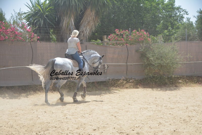 Un cheval PRE exceptionnel. Ce mâle est inscrit en stud-book, ce qui lui permet également d'être utilisé en reproduction. Il est un compagnon doux et facile à vivre. Il possède trois allures de base très bonnes, qu'il aime également montrer en liberté. Il a été monté en dressage sur ses trois allures, maîtrise les épaules en dedans, et nous travaillons actuellement sur le changement de galop. À l'âge de 2 ans, il a obtenu la 8e place au Sicab. Un PRE magnifique, typé, clair dans sa tête et prêt au travail. Le cheval est vendu pour le compte de son propriétaire. Il peut rester en pension chez nous si souhaité. Une échographie complète sera organisée rapidement. Transport international possible.