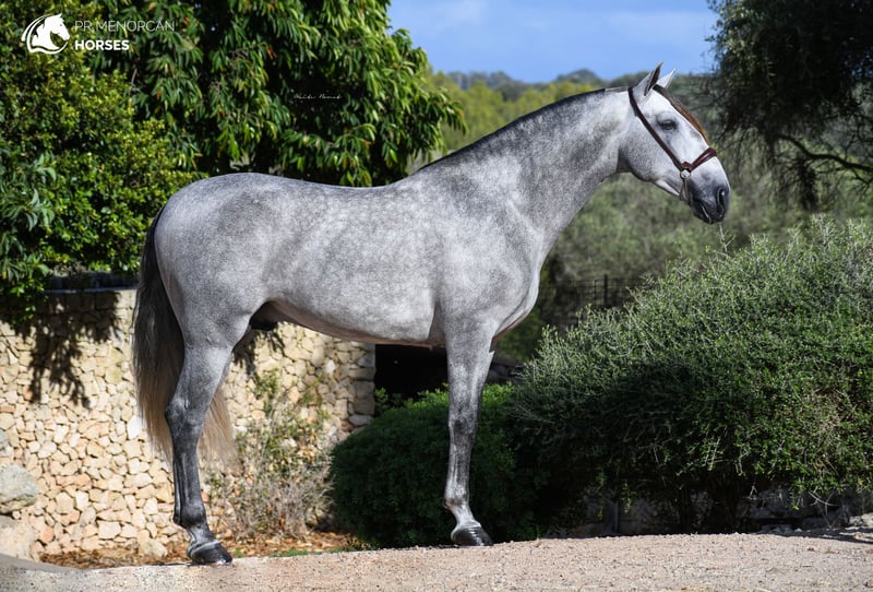 Magnificent 6-Year-Old Pure Spanish Breed Stallion A True Gem for Lovers of High-Quality Horses This stunning 6-year-old Pure Spanish Breed (PRE) stallion, registered in ANCCE grey, is now available for sale. He is an extremely special horse to his breeder, and we are seeking a five-star home where he will be cared for and appreciated as he deserves. This stallion will captivate you with his spectacular movements, which have been recognized in multiple competitions. Standing at 162 cm, his impressive presence makes him stand out in any arena. With a more introverted personality, he’s a sensitive horse who trusts his rider completely, forming a deep and unbreakable bond. Trained in both classical and Menorcan dressage, this stallion has intermediate-level training, including lateral work, Spanish walk, levade, and is currently learning passage, piaffe, and flying changes. He is highly versatile, accustomed to working in the arena and out in the fields, and is comfortable training alongside other stallions. His results in competitions speak for themselves: he has won awards for best movements and functionality, and was named Adult Champion of the Show and Champion of Functionality. This stallion is not only a beauty to behold but also a proven competitor. If you're looking for your next dressage project or a stallion for breeding, this horse is the ideal choice. His temperament, training, and proven competition results make him a horse with tremendous potential. And if breeding isn’t your goal, no worries—we can organize castration before transport to make him the perfect partner for any discipline. This stallion is regularly dewormed and vaccinated, is piro-negative, and has perfect X-rays. We can organize a pre-purchase exam, quarantine, and shipping worldwide for your convenience and peace of mind. For more information, photos, or videos, contact us privately. Located in Menorca We look forward to helping you find your perfect match in this exceptional stallion!