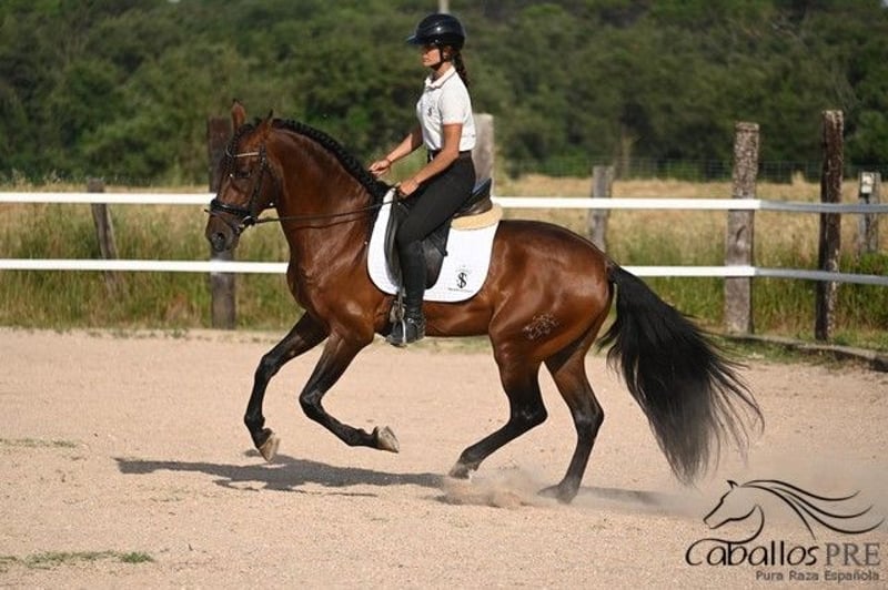 Neon is a 7-year-old horse with an approximate height of 16.1 hh. He has a solid foundation in basic training, has been ridden gently and carefully developed, and is now ready for further education. He exhibits very good movement and an excellent temperament. Even for less experienced or stronger riders, he remains easy to handle. He always cooperates willingly and has no vices. He has not been used for breeding. If desired, he could be trained for that purpose. Neon has an outstanding pedigree. Paternal lineage: Brisoo Can Mas x Bodeguero XXV Maternal lineage: Corinto x Educado X With proper training, he is very promising for classical dressage. He is free of piroplasmosis. Location: near Barcelona, Spain Price: €11,000 plus VAT For more information, please contact us by phone. We are happy to send videos after a personal conversation. Please understand that we do not respond to anonymous inquiries. Transport can be arranged worldwide. Viewings are possible at any time by appointment.