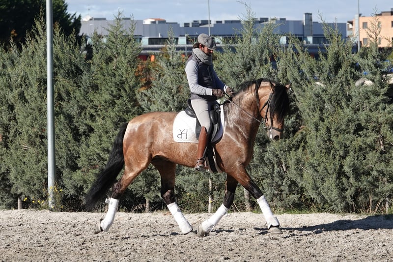 🏆 DECIDIDO YR - Your Next Dressage Partner A 6-year-old PRE stallion combining elegance, quality movement, and a temperament so kind it will surprise you from the first moment. 💎 WHAT MAKES DECIDIDO SPECIAL: This isn't just another horse. Decidido has that perfect balance every rider seeks: enough sensitivity to respond to the subtlest aids, but with the cool head of an experienced professional. At just 6 years old, he's already working 2nd Level with piaffe and passage initiated. Lateral work flows naturally, simple changes are clean and precise, and his work attitude is always generous. He never says "no" - he asks "how". 🎯 YOUR DAY-TO-DAY WITH DECIDIDO: Imagine riding a stallion who: ✓ Focuses on work like he's a gelding ✓ Forgives mistakes while you learn together ✓ Has the quality to shine in competition ✓ Is easy to handle in stable, transport, and daily management ✓ Enjoys the work as much as you do Not your typical "hot" horse keeping you in constant tension. He's a true partner. 📚 CURRENT LEVEL (2nd Level / PSG development): - Simple lead changes established - Complete lateral work: shoulder-in, travers, half-pass both directions - Piaffe under saddle initiated - first clean, well-defined steps - Passage in development - already showing the idea - Fluid transitions between gaits and within gaits - Natural collection, never forced He's at that perfect moment: has solid foundation but still so much exciting road ahead to Grand Prix. 🌟 TEMPERAMENT - THE MOST VALUABLE: "He's a stallion but doesn't act like one" - that's what everyone says after riding him. Noble, hardworking, intelligent. Learns fast and remembers well. No vices, not fussy, doesn't complicate simple things. Perfect for: - Amateur riders wanting FEI competition - Professionals seeking project with real talent - Anyone who values the mind as much as the movement - Those who want to enjoy every training day, not just survive it 🏥 HEALTH & DOCUMENTATION: ✓ PIRO FREE (Piroplasmosis test negative) ✓ Veterinary checks up to date ✓ X-rays available ✓ Complete ANCCE passport 165cm (16.2hh) - Elegant bay 🎥 WATCH VIDEO: Real day-to-day work. No tricks, no special editing. What you see is what you'll ride. ⚡ READY FOR HIS NEW HOME: Decidido doesn't need "2 more months" of preparation. He's ready today. You can ride tomorrow and keep building from where he is. The question isn't if he has potential - the question is: are you ready for this journey to Grand Prix? --- 📞 NEXT STEP: Let's talk. No pressure, no commitment. WhatsApp: +34 613 355 662 Email: info@apmiberianhorses.com Website: apmiberianhorses.com --- 📍 Location: Noáin, Navarra, Spain In-person visits welcome by appointment APM Iberian Horses Finca El Pontarrón, Navarra 20+ years breeding and training quality Iberian horses