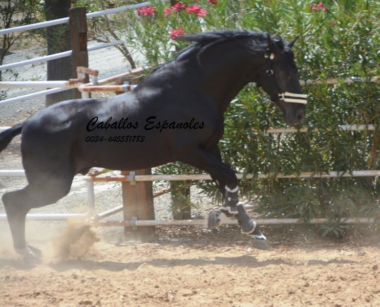Ce magnifique étalon PRE cherche un nouveau foyer. Cet étalon PRE très expressif se présente avec une élégance et une crinière sauvage. L'étalon est bien construit, avec une base stable. Déjà dans le box, il sait attirer tous les regards. Sa crinière ondulée met encore plus en valeur sa beauté. L'étalon est doux et câlin au contact. Cette beauté noire est dotée de trois bonnes allures de base. Il a été monté tardivement. Il est monté aux trois allures de base, sait faire des déplacements latéraux et des épaules en dedans. Il a également été en extérieur, seul et avec d'autres chevaux. Le cheval est vendu pour le compte d'un tiers. Il peut rester en formation chez nous. Une visite vétérinaire sera organisée à court terme. Transport international.