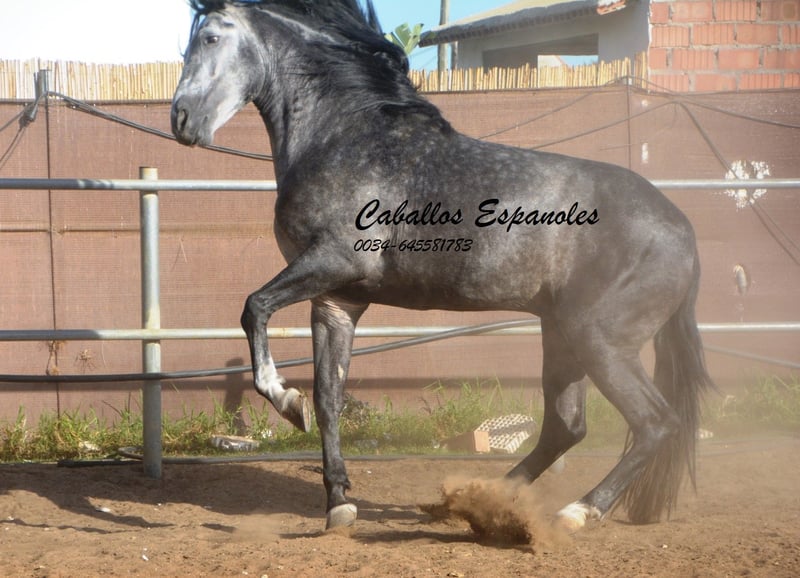 Un caballo PRE de tipo barroco, tal como uno imagina. Base sólida, apariencia clásica con una melena impresionante. Este magnífico semental destaca por su manejabilidad y su actitud. Muy cómodo en el asiento y fácil de llevar en el cuello. Con una excelente disposición para el trabajo, amigable y de trato sencillo. Está montado en los movimientos básicos, y se trabaja en laterales, piaffe y cambios de mano en galop. En el campo, es intrépido y ya ha participado en una Romería. Cuenta con tres buenos aires básicos. Una recomendación especial para el jinete de ocio ambicioso. El caballo se vende por encargo. Puede permanecer con nosotros en entrenamiento si se desea. Se organizará una inspección veterinaria en breve. Transporte internacional disponible.