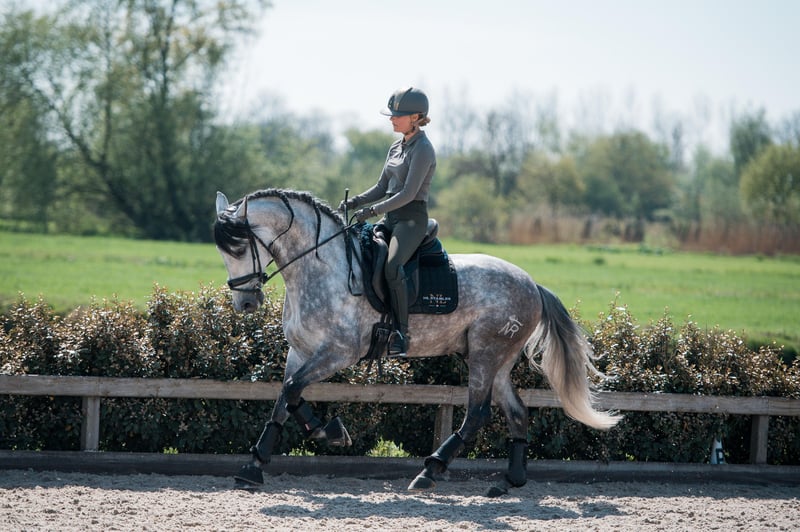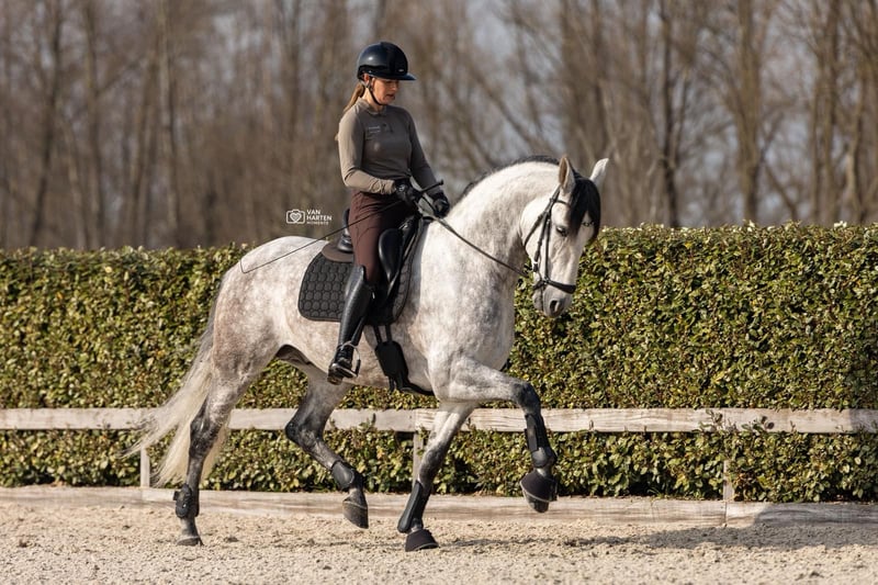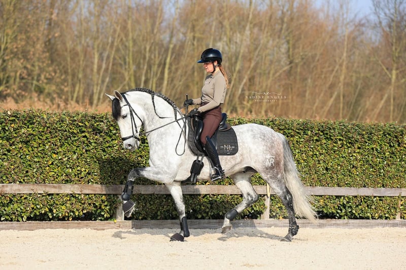 NL Stables Lucero NR is a beautiful approved stallion with a super sweet character. His impressive appearance immediately leaves an unforgettable impression. Lucero comes from the well-known breeder Yeguada Romerito in Malaga. He has three good gaits, a nice walk, an extremely spacious trot with strong hind leg use, and a very beautiful upward canter. It is a horse that moves with a lot of suppleness, a promise for the future. Lucero jumps a confirmed series and is being trained at the ZZ-heavy level. Lucero comes directly from the breeder and is fully approved. www.nlstables.com