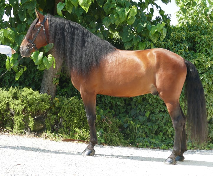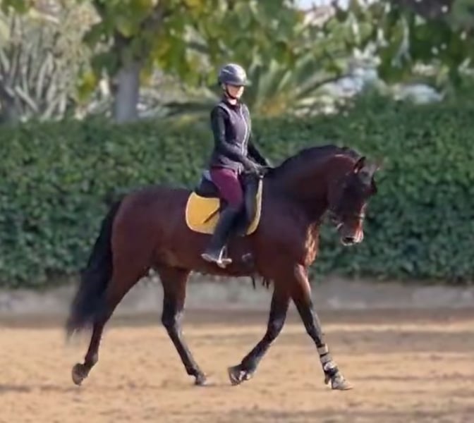Papillon is a beautiful PRE stallion. Nice to ride, not spooky. He has not worked a lot in his life, so his level of dressage is basic. But he learns quickly. He will be castrated to become a very pleasant horse for any discipline.