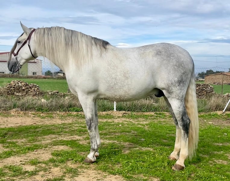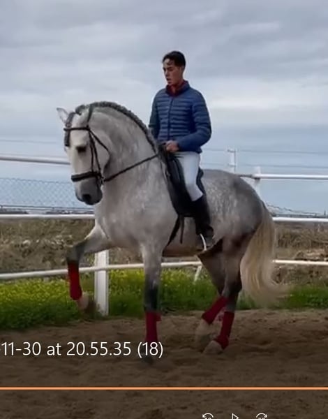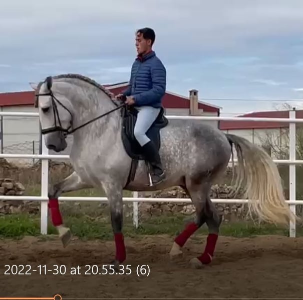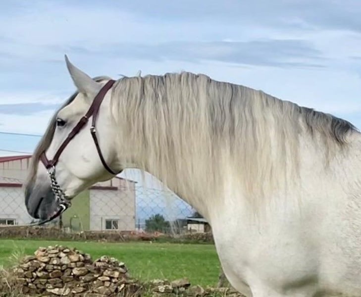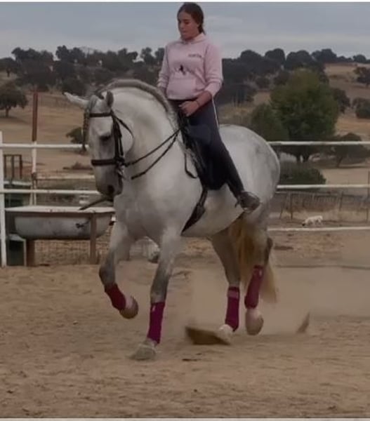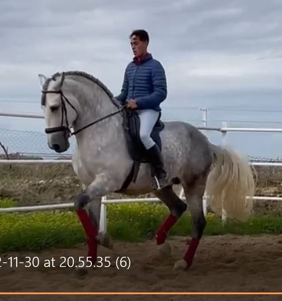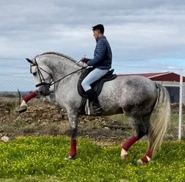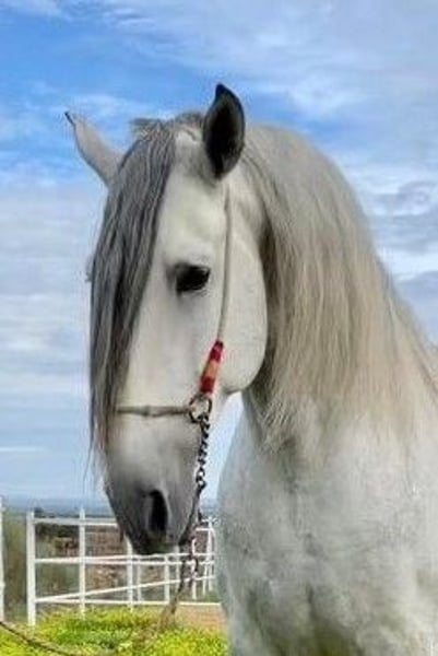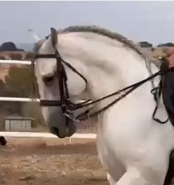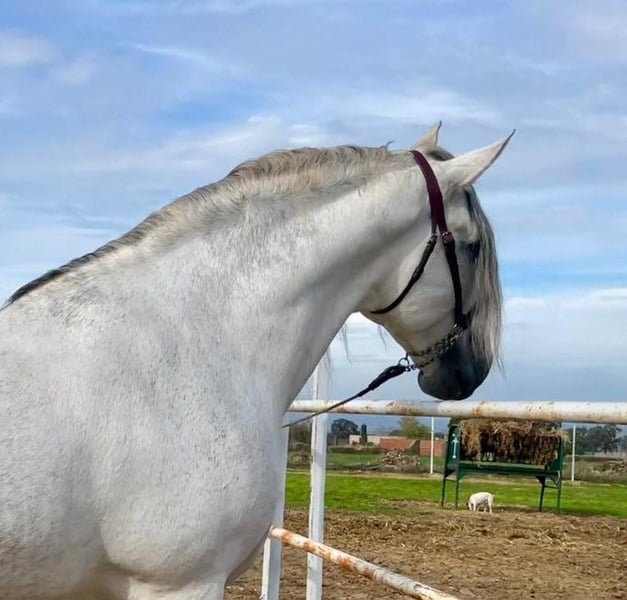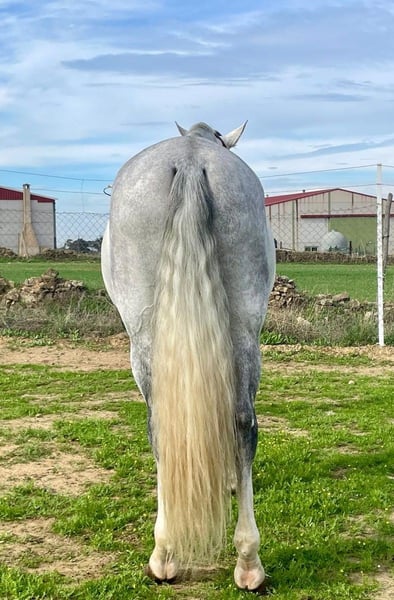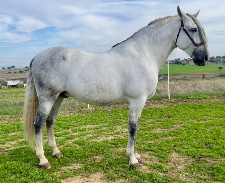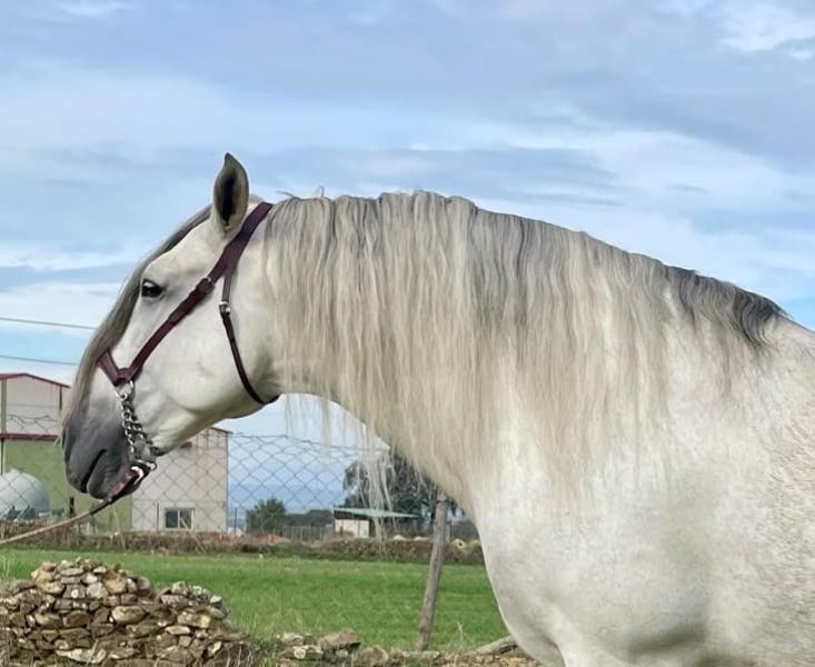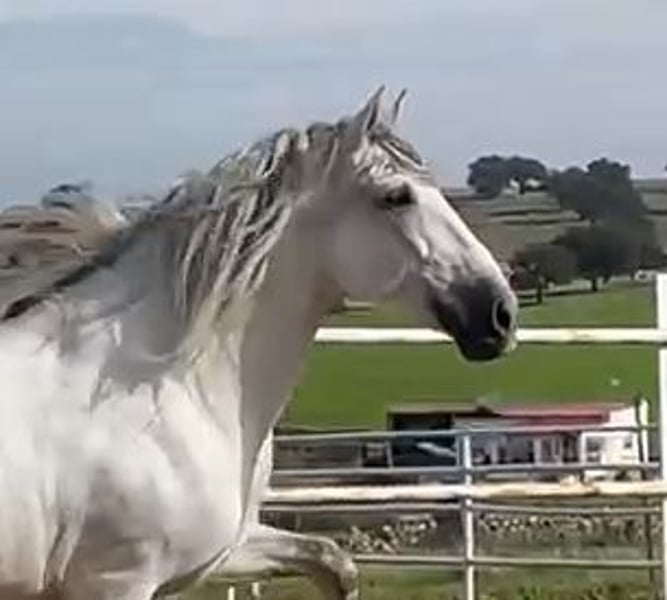 YEGUADA EL PALMERAL from Badajoz-Spain, is SELLING a great grey stallion, producing very good offspring with high morphological quality, breed characteristics, and movements, with exceptional nobility. Anyone can ride him, even those without riding experience. He passes all these traits to his offspring. UP TO DATE WITH ALL VACCINATIONS AND DEWORMED, he stands 1.72 meters at the withers, from the old PRE lines of Lopez Monix and Granda, lines with strong breed characteristics. He is trained, performing Spanish walk, piaffe, and participating in functional tests and morphological competitions. A Baroque horse with special beauty, featuring long, curly, and wavy mane and tail. He serves as a stallion, covering both by hand and freely in the herd of mares. A spectacular horse for leisure riding, morphological competitions, classical dressage, high school, etc. IF YOU WANT TO HAVE A GREAT PRE HORSE THAT IS SUITABLE FOR EVERYTHING, LEISURE, BREEDING, DRESSAGE, WITH HIGH QUALITY, STRONG BREED CHARACTERISTICS, AND MOVEMENTS, THIS IS YOUR HORSE. HE IS BEING SOLD BECAUSE HIS SON WILL BE KEPT AS A STALLION AT THE STUD FARM, AND HIS DAUGHTERS WILL REMAIN AS MOTHERS, SO THEY CANNOT BE BRED WITH THE FATHER. A HORSE THAT BUILDS A HERD, VERY, VERY NOBLE. CALL NOW BEFORE IT'S SOLD, IT'S WORTH IT.