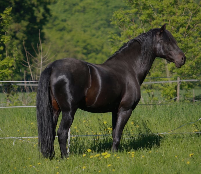 Dieser einmalige lackschwarze Cartujano-Hengst mit Zertifikat steht für wenige ausgewählte Stuten (PRE, gerne Cartujano) zum Decksprung zur Verfügung. Viento ist von außergewöhnlicher Schönheit und Eleganz und trägt das historische Erbe der edlen Cartujanos. Er ist temperamentvoll, intelligent und sehr präsent. Dem Menschen gegenüber ist er stets sanftmütig und zugewandt.