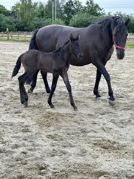 Te koop: een mooi en correct en super knap PRE-hengstveulen met een fijne, betrouwbare achtergrond. Beide ouders staan bij ons op stal en zijn in onze eigendom, waardoor we zijn afstamming en karakter volledig kennen. Mama: APTA-goedgekeurd Papa: APTO-goedgekeurd Beide ouders zijn erkend als goede bewegers met sterk exterieur én fijne karakters — iets wat dit veulen duidelijk heeft meegekregen. Hij is dagelijks in de hand, groeit op in een rustige omgeving en is een zeer braaf en respectvol veulen. Verder is hij: ✔️ In orde met alle inentingen ✔️ Braaf bij de hoefsmid ✔️ Gezond, nieuwsgierig en mensgericht Kortom, een veelbelovend veulen met een correcte basis en fijne instelling, ideaal voor iemand die later met plezier wil werken met een eerlijk PRE-paard en een knappe zwarte PRE! Dressuurmatig gefokt. Foto van mama en veulen Foto van papa Hij staat gestald in Oost-Vlaanderen, Oudenaarde. Steven +32 (0) 479 09 09 18