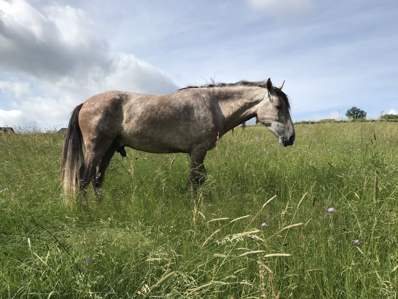 P.R.E. Wallach, Stallname „Sisco“ – 9 Jahre – Freizeitpferd mit tollem Charakter in gute Hände abzugeben Schweren Herzens suchen wir für unseren 9-jährigen P.R.E. Wallach ein neues, liebevolles Zuhause, da wir den Reitsport aufgeben. Wir haben ihn selbst aus Spanien importiert, er hat volle Papiere aber kein Brandabzeichen und wurde auch in Spanien nie hart angefasst, hat keine Serretanarben oder sonstige Altlasten aus Spanien. Er ist freizeitmäßig geritten, wurde zuletzt zuverlässig von einer 14-jährigen Reitbeteiligung bewegt und geht alleine ins Gelände – absolut unerschrocken und brav. Er ist fein zu reiten, sehr angenehm zu sitzen und hat ein Ausbildungsniveau von E bis A. Er ist begabt zur Freiheitsdressur und kennt Klickern, womit er besonders gerne und schnell neue Lektionen lernt. • Ideal für pferdegerechte barocke Ausbildung oder Freiheitsdressur • Auch als Familienpferd sehr gut geeignet • Zähne wurden im September gemacht • Hat sehr gute Hufe, barhuf gehalten • Charakterstark, menschenbezogen und zuverlässig Wir wünschen uns für ihn einen Platz, an dem er pferdegerecht weiter gefördert wird und in guten Händen bleibt. Reine Boxenhaltung kommt nicht in Frage. Aufgrund seines gemütlichen Grundcharakters würde er im Dressursport nicht glücklich werden.