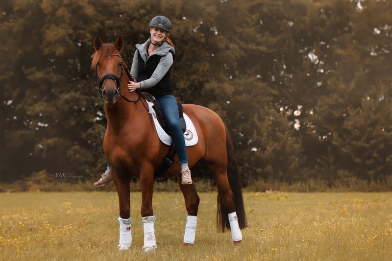 Er überzeugt vor allem durch seinen tollen Charakter: Brav, gelassen und nervenstark. Ob im Alltag, beim Gelassenheitstraining oder in ungewohnten Situationen. Auch im Gelände ist er ein verlässlicher Partner. Selbst besondere Reiturlaube, wie zum Beispiel ins Watt, meisterte er stets entspannt. Seine Vielseitigkeit macht ihn zu etwas ganz Besonderem: Er beherrscht verschiedene Zirzensiklektionen wie den spanischen Schritt, das Kompliment – sowohl vom Boden aus als auch unterm Reiter. Auch für kleinere Sprünge ist er zu begeistern. In trubeliger Umgebung, etwa auf Messen oder bei Veranstaltungen, zeigte er sich bereits sehr cool und unbeeindruckt. Im Umgang ist er absolut unkompliziert: schmiede- und verladefromm, regelmäßig entwurmt und geimpft, vorne beschlagen und stets gepflegt. Ich habe ihn seit sechs Jahren und in dieser Zeit zeigte er sich immer gesund und zuverlässig. Aktuell befindet er sich nicht im intensiven Training, da ich ihn aus gesundheitlichen Gründen nicht mehr entsprechend fördern kann. Genau aus diesem Grund gebe ich ihn schweren Herzens ab – es handelt sich ausdrücklich nicht um einen Notverkauf. Mir ist es sehr wichtig, dass er ein liebevolles Zuhause findet, in dem er als das geschätzt wird, was er ist: ein echtes Traumpferd mit großem Herz und vielseitigen Möglichkeiten. Passende Ausrüstung, wie ein auf ihn angepasster Sattel, kann nach Absprache mit übernommen werden.