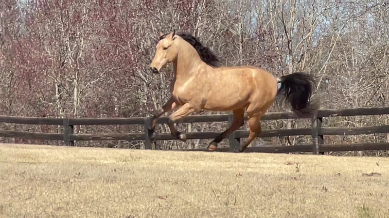 Si vous recherchez le facteur « wow », Rayito est votre cheval. Né en 2016, il a été importé aux États-Unis en tant que yearling. Il a été commencé en selle par un entraîneur portugais. Il possède trois allures pures, un trot très confortable pour s’asseoir et un joli galop. Il a déjà participé à quelques compétitions, notamment en deuxième niveau l’été dernier. Actuellement, il travaille les mouvements du troisième niveau sous la guidance compétente d’un entraîneur classique du Portugal. Il a un tempérament charmant et joueur, et il se développe magnifiquement sous la selle. Il mesure plus de 1,65 m, mais pas tout à fait 1,66 m, avec un corps large et puissant qui occupe bien la jambe — tout le monde pense qu’il fait 1,68 m. Rayito est joueur, enchanteur et prêt à créer un lien avec sa personne pour toujours. Il sait qu’il est spécial. Il est sain, confiant, pas peureux, et expérimenté en randonnée. Il convient le mieux à un cavalier confiant qui apprécie un cheval puissant, réactif aux aides légères. Il est enregistré auprès du USDF/USEF, révisé par l’ANCCE, et fera un partenaire exceptionnel en compétition ou en loisir. Situé à Aiken, en Caroline du Sud. Des vidéos supplémentaires sont disponibles — n’hésitez pas à nous contacter pour plus de détails.