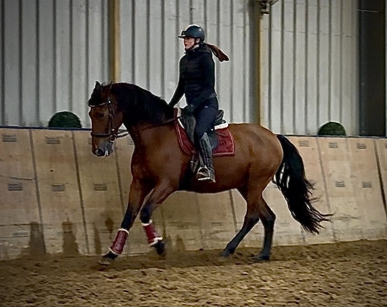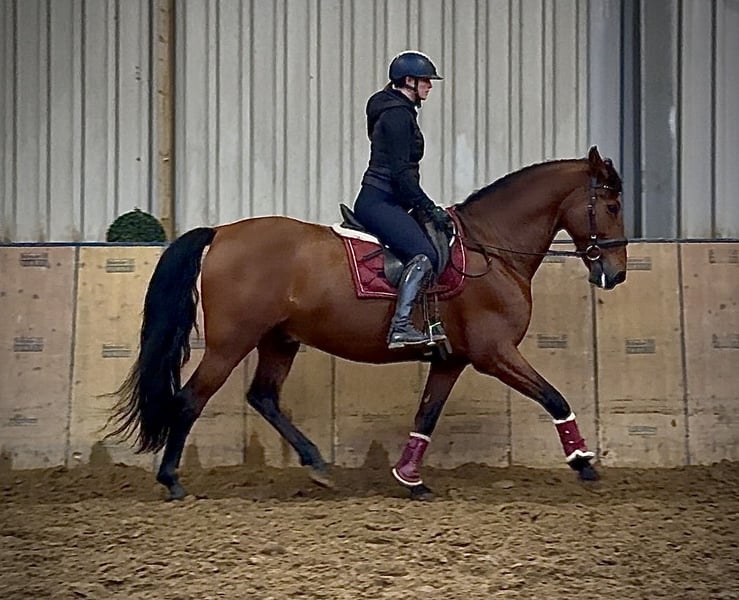 Name: Coliseo XV Breed: P.R.E. (Pure Spanish Horse) Gender: Gelding Date of Birth: December 1, 2015 Age: 11 years Height: 1.60 m (approximately 16.1 hh) Color: Bay Pedigree: with pedigree documentation Temperament: friendly and people-oriented, reliable, patient, curious, intelligent, brave Training/ suitability: ridden, dressage, leisure riding, baroque riding, working equitation Trail Experience: dependable, fearless, steady nerves, confident alone and in a group Health: dewormed, vaccinated, barefoot, eczema-free, teeth checked, osteopathically treated Stabling: box stall, open stable Special features: good basic gaits, very comfortable rider, farrier- and loading-friendly, herd-compatible The properties listed are based on our personal assessment and do not constitute guaranteed characteristics. Price: €7,900 (including VAT) Have we piqued your interest? To give you a better impression of Coliseo, we are happy to send you his riding video. Of course, we are available for a detailed description of the horse, personal consultation, and to answer all your questions by phone. Please feel free to contact us anytime via WhatsApp or call us at: +49 151 19487595 Our phone hours are daily from 7:00 AM to 1:30 PM and again from 8:00 PM. We look forward to hearing from you! A clinical or radiological pre-purchase examination can be arranged with the veterinarian of your choice. Coliseo can be delivered safely and comfortably to his new home. We take care of all necessary preparations and transportation so that your new horse arrives stress-free, well-cared-for, insured, and in good health. Currently, we offer a carefully selected range of sale horses. With us, you are sure to find your dream horse. Feel free to visit us on our homepage: www.marvinsroyalhorses.de. Dear customers, we are happy to introduce you to our horses. You are welcome to lead, groom, saddle, lunge, do groundwork, or try riding in the riding hall, on the arena, or in the field to get to know your new family member better. This costs €40 for one horse, and €30 for each additional horse, and will be refunded upon purchase. Our address: Ferdinand Grube 50 53577 Neustadt-Wied Google Maps: marvinsroyalhorses