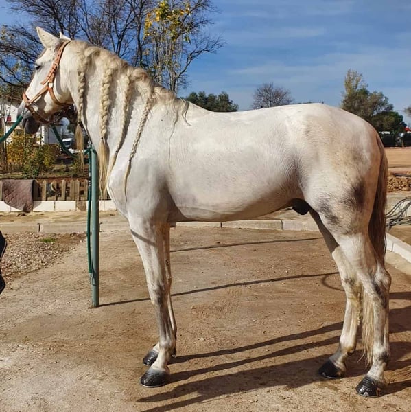 Beautiful horse for dressage or show. ROSALERO is very easy to ride. With him, you can easily do all the lateral movements, counter canter, go to canter from the walk, and if you are skilful, even changes of foot, because he is learning them now. Besides, his owner has taken him to many pilgrimages and outings in the countryside, so you will also enjoy walking him wherever you want, alone or with other horses. Of course, you will have to take good care of his precious mane to keep it this beautiful :-) ****************************************************************************************** We know that you are looking for much more than a horse; you are looking for a life companion. That's why at IberHorse, it's crucial for us that you find the right one: We offer more options than anyone else: Don't waste time or energy searching elsewhere. We've created an online catalog for you to explore the wide variety of horses we have carefully examined. Choose the one that resonates with you, knowing that each has been selected with riders in mind who, like you, are looking for a healthy, friendly, and balanced companion. ⌛ Receive it as soon as possible at your stable: We understand your excitement to start this new friendship, so we strive to make the search and acquisition process as quick and smooth as possible. Let yourself be surprised by our unique, professional, and efficient methodology. You are not alone in this: The fear of making the wrong choice is understandable. With over 13 years of experience in the market, at IberHorse, you will find genuine and honest advice. We provide you with the security you need to make your purchase with confidence. ️ A to Z Service: We want you to enjoy every step of this exciting journey. Therefore, we will take care of any needs that may arise during the process. From pre-purchase exams conducted by the best veterinarians to ensuring the utmost care and an efficient delivery anywhere in the world, we are here for you. We are still there after the arrival: Our commitment to you does not end when your horse arrives at its new home. We continue to advise and accompany you in this crucial phase of adaptation. For us, it's essential that both you and your horse experience a smooth and positive transition. We are at your disposal to address any questions or needs promptly and professionally. At IberHorse, your equestrian passion and satisfaction are our utmost priority. Start your search with us and find not just a horse, but a true life companion!