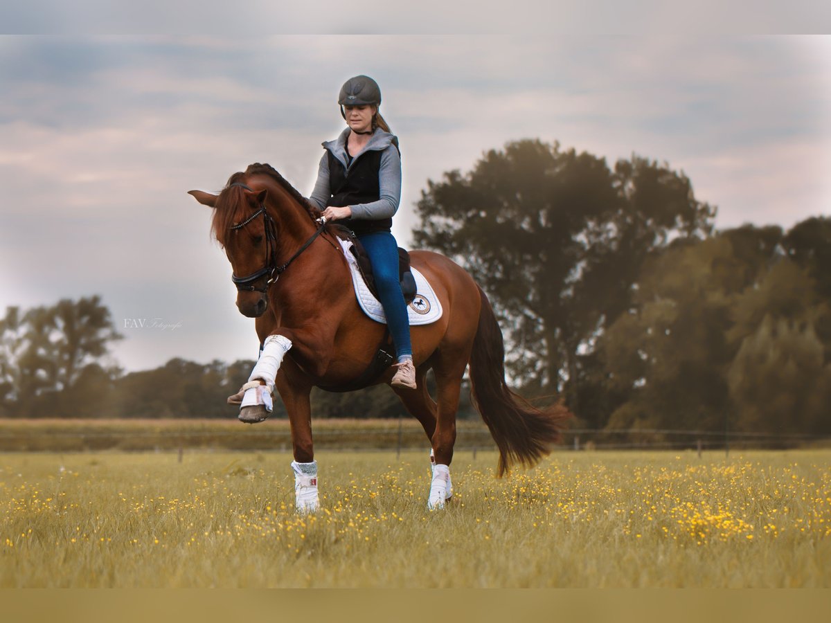 Er überzeugt vor allem durch seinen tollen Charakter: Brav, gelassen und nervenstark. Ob im Alltag, beim Gelassenheitstraining oder in ungewohnten Situationen. Auch im Gelände ist er ein verlässlicher Partner. Selbst besondere Reiturlaube, wie zum Beispiel ins Watt, meisterte er stets entspannt. Seine Vielseitigkeit macht ihn zu etwas ganz Besonderem: Er beherrscht verschiedene Zirzensiklektionen wie den spanischen Schritt, das Kompliment – sowohl vom Boden aus als auch unterm Reiter. Auch für kleinere Sprünge ist er zu begeistern. In trubeliger Umgebung, etwa auf Messen oder bei Veranstaltungen, zeigte er sich bereits sehr cool und unbeeindruckt. Im Umgang ist er absolut unkompliziert: schmiede- und verladefromm, regelmäßig entwurmt und geimpft, vorne beschlagen und stets gepflegt. Ich habe ihn seit sechs Jahren und in dieser Zeit zeigte er sich immer gesund und zuverlässig. Aktuell befindet er sich nicht im intensiven Training, da ich ihn aus gesundheitlichen Gründen nicht mehr entsprechend fördern kann. Genau aus diesem Grund gebe ich ihn schweren Herzens ab – es handelt sich ausdrücklich nicht um einen Notverkauf. Mir ist es sehr wichtig, dass er ein liebevolles Zuhause findet, in dem er als das geschätzt wird, was er ist: ein echtes Traumpferd mit großem Herz und vielseitigen Möglichkeiten. Passende Ausrüstung, wie ein auf ihn angepasster Sattel, kann nach Absprache mit übernommen werden.