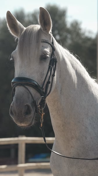 Garboso is a PRE gelding born in 2014, and he has been in my care since 2021. He possesses elegant, expressive gaits and makes an excellent leisure horse. When out on rides, he is very relaxed and confident, showing no fear of noises or unfamiliar situations. In the dressage arena, he has a bit more energy and requires a rider who remains calm and provides him with security. He does not buck, rear, or display any bad habits, but when overwhelmed, he needs someone who can handle him with clarity and fairness. With regular exercise, he is very easy to handle and becomes much more balanced and settled. Unfortunately, I currently lack the time to give him the attention he deserves, so I am seeking a loving home with stable routines for him.