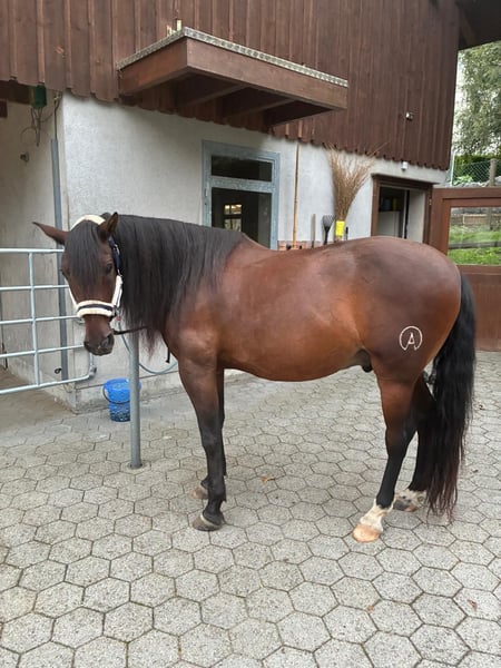 13jähriger PRE Wallach mit ANCCE Papieren zu verkaufen, Stockmass ca. 1.56 m, erste Hand, absolut sozial zu Mensch und Pferd, verkehrs- und geländesicher, kann von Anfängern geritten werden. Ist barhuf und mit Hufschuhen sowie Sattel ausgestattet, so dass Messi parat für die ersten Herbstritte ist. Pferd ist im Raum Henau/Uzwil zu Hause. Termine nach Vereinbarung mit Besitzerin. Verhandlungspreis CHF 13‘500 inkl. Sattel und Hufschuhe.