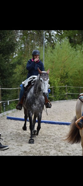 Blue ich ä 12 jähriger PRE Spanier Stockmass 1.57 us erster Hand. Er isch Westerngritte kennt aber ou Englisch. Er isch ä mega ahängleche verschmuste u äs tod liebs Rössli zu chind lüt u hünd. Er wird mit Hufschueh gritte isch aber früecher ou bschlage gsieh. Ha mit ihm Horseagility, extrem Trail, Gymkhana gmacht. Mit hei ou scho mängisch mehrtägegi wanderritte gmacht. Er läbt bi mir imne offestau mit viuuu uslouf was er ou umbedingt brucht. Wenn dir inträsse heit de mäud di doch.