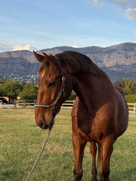 Biscochito su stable name 🥰 lleva con nosotras desde los dos años ,tiene nivel san Jorge /inter 1 un carácter inmejorable,a concursado hasta nivel Inter 1 con su amazona amateur ,trabajando el piaffe /passage Le encanta trabajar y es un gran profesor Una maravilla en el manejo ,para esquilar herrar Se puede montar con filete o filete y bocado Se porta genial de paseo totalmente Boomproof y también a ido a la playa en el agua Tiene rx y libre de piro