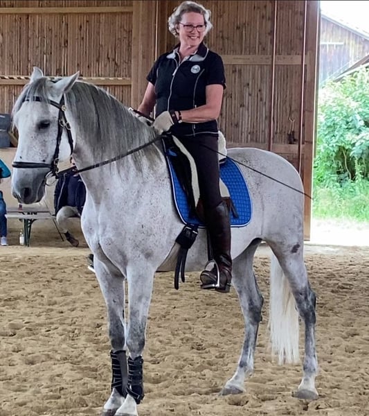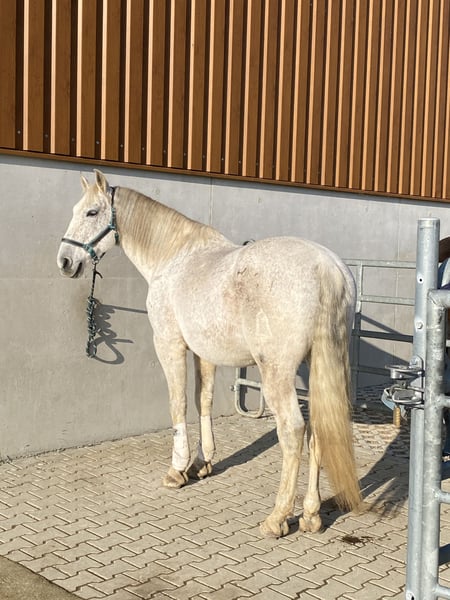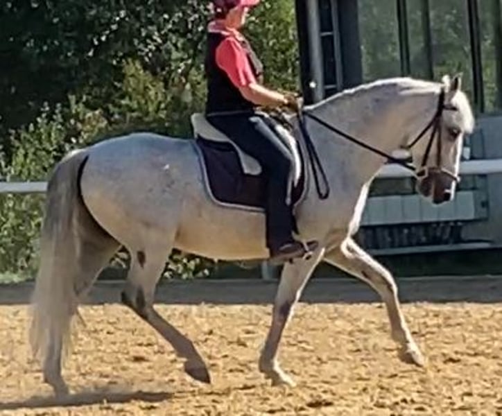 Schweren Herzens trenne ich mich aus gesundheitlichen Gründen von meinem 13 jährigen PRE Wallach, ANCE eingetragen. Gut ausgebildet kann er spanischen Schritt, knien, liegen, drehen, z.T. apportieren, Piaffe, Passage, sämtliche Seitengänge, hat weiche, federnde Gänge. Brav im Gelände. Verlade und Schmiedefromm, gut erzogen im Umgang. Derzeit lebt er im Aktivstall, er kennt aber auch Boxenhaltung. Sehr verträglich in der Gruppe, mit Stuten aber gerne mal hengstig. Er hat eine Kissingspine Diagnose, die ihm aber keinerlei Probleme bereitet, deshalb entsprechend günstig. Kein Anfänger- oder Schulpferd, keine Händler.