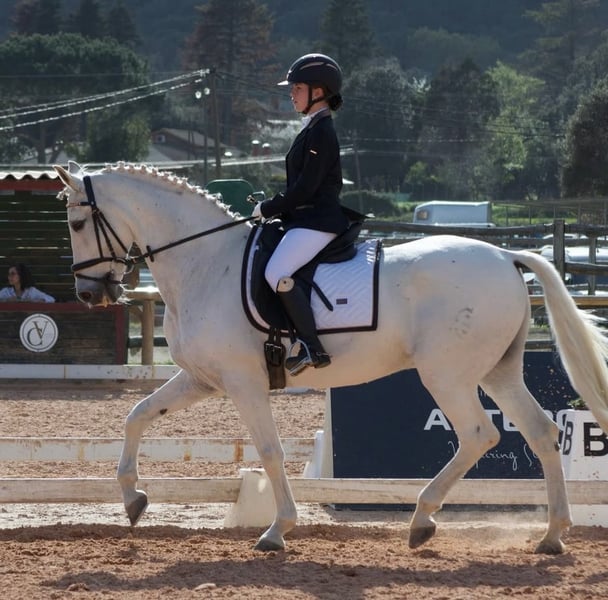 More info: +34 690 399 239. Ruth (Spain) **German** Graues Pferd, 19 Jahre alt, mit der Vitalität und Kondition eines 10-Jährigen. Geeignet für Dressur, Ausritte und Springen. Derzeit startet er auf Jugendniveau bei regionalen und nationalen Wettbewerben. Pferd mit ausgezeichneter Charaktereigenschaft: ruhig, edel und leicht zu handhaben. Sozial im Umgang mit anderen Pferden und sehr liebevoll im Umgang mit Menschen. Ideal für einen Reiter, der ein erfahrenes, sicheres und angenehmes Pferd sucht – sowohl für den Turniersport als auch für entspannte Ausritte ins Gelände.