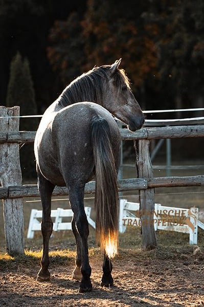 Was für ein wundervoller PRE - Wallach! Unser ✨MAXIMO LM✨ ist ein echtes Ausnahmepferd! Er macht jetzt schon, in seinem jungen Alter, ein unglaublich tolles Bild, zeigt leichtfüßige, raumgreifende Bewegungen und hat schon jetzt eine fantastische Balance. Mit seinem harmonischen Exterieur, seinem wunderbaren Charakterkopf, dem lieben und sehr klaren Blick begeistert er jeden, der ihn sieht. Dazu ist dieser Wallach super lieb, sehr menschenbezogen und absolut klar im Kopf. MAXIMO LM ist ein Pferd von ganz besonderer Qualität und lässt jetzt schon erahnen, wie er sich zukünftig unter dem Reiter weiterentwickeln wird. Er ist ein Traumpferd zum Selberausbilden mit viel Potenzial für Dressur und Working Equitation. Der schöne Schimmel wartet nun in Traventhal auf seinen Herzensmenschen, der ihn weiter fördert. Röntgenbilder liegen vor. Standort: 23795 Traventhal Ein Kennenlernen unseres MAXIMO ist nach Terminabsprache nahezu jederzeit möglich. Für diesen Termin nehmen wir zum Schutz unserer Pferde eine Pauschale von 50,-€.