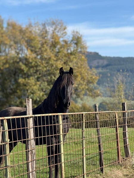 2 jaar oude PRE-hengst, bloedlijnen Yeguada Militar en Escalera. Op de laatste foto is zijn merrie te zien. Zijn vader komt uit de Piro-vrije zone. Hij neemt deel aan Grand Prix niveau dressuur.