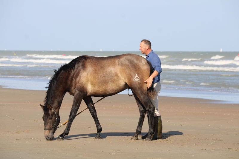 Baronet del Abadia wurde bei uns am 26.02.2023 aus unserer Zuchtstute Gracia IV und Doblón-TR (letzte 4 Fotos) geboren. Baronet ist ein besonders schönes und kräftig gebautes Hengstfohlen. Er hat einen sehr guten Schritt, einen elastischen Trab und eine raumgreifende Bergaufgaloppade. Diese Bewegungen verdankt er sicherlich auch seinem Vater Doblón-TR, Elitehengst und Sohn von Ermitaño III, dem ersten Elitehengst der PRE. Baronet ist ein dynamischer, athletischer Typ. Wir sehen für ihn eine sehr gute Zukunft in der Dressur. Ende August gewann er beim Campeonato Centro Europeo in Brügge eine Goldmedaille in der Serie der 1-jährigen Hengste. Dort erhielt er die beste Bewertung sowohl für die Morphologie als auch für die Bewegungen. Baronet ist ein taubes Pferd, er ist sehr respektvoll und arbeitswillig. Anhänger, Hufschmied, Tierarzt, etc. sind kein Problem. Wer ihm Zeit geben möchte, sich zu entwickeln und mit ihm zusammen zu wachsen, wird viel von Baronet zurückbekommen. Mehr Infos über elabadia@telenet.be oder +32(0)489361015. Wir befinden uns in Belgien, Region Veurne. Sie sind jederzeit herzlich eingeladen, unseren Zuchtbetrieb zu besuchen!