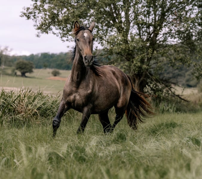 Evento ist ein ausgeglichener junger Wallach aus reinen Cartujano Linien (mit Zertifikat). Er wurde bei mir geboren und wuchs zuerst mit seiner Halbschwester auf. Später wurde er Koppelpartner seines Vaters. Im Winter hat er täglich Koppelgang, im Sommer ist er ganz auf der Koppel. Evento ist regelmäßig geimpft und entwurmt. Er kennt den Hufschmied, spazieren gehen und Hänger fahren. Aktuell absolviert er ein Freispringtraining und kennt somit die Reihalle und Hindernisse.