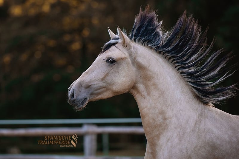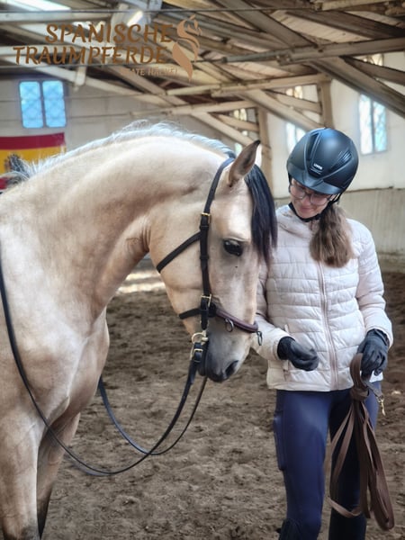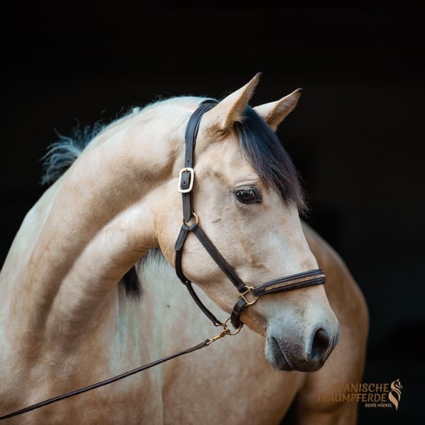 Eine wahre Augenweide ist unser süßer, wahnsinnig lieber Kuschelbär ✨SKAR SH✨. Dieser wunderschöne falbfarbene PRE-Wallach liebt es gekrault und beschmust zu werden, ist im Umgang ein wahrer Schatz und hat ein unglaublich nervenstarken Charakter. Diese Charaktereigenschaften machen SKAR SH zu einem echten Familienpferd. Abgerundet wird sein Bild durch ein harmonisches, barockes Exterieur mit einem wunderschönen Köpfchen und unglaublich lieben Kulleraugen. Sein auffälliger zweifarbiger Behang setzt das I-Tüpfelchen auf dieses tolle Pferd. Altersgerecht steht dieser Schönling natürlich erst am Beginn seiner Ausbildung. Er kennt den Sattel auf seinem Rücken und hat auch schon das Reitergewicht gespürt. Dabei ist dieses zauberhafte Kerl unglaublich gelassen und entspannt. Nun wird dieser liebenswerte Wallach in Ruhe über Boden- und Zügelarbeit gearbeitet. SKAR SH ist ein Traum für denjenigen, der ein barockes Pferd in Sonderfarbe, mit einem guten und nervenstarken Charakter zum Selberausbilden sucht. Aufgrund eines röntgenologischen Befundes wird dieses zauberhafte Wallach weit unter Wert angeboten. Röntgenbilder liegen vor. Standort: 23795 Traventhal