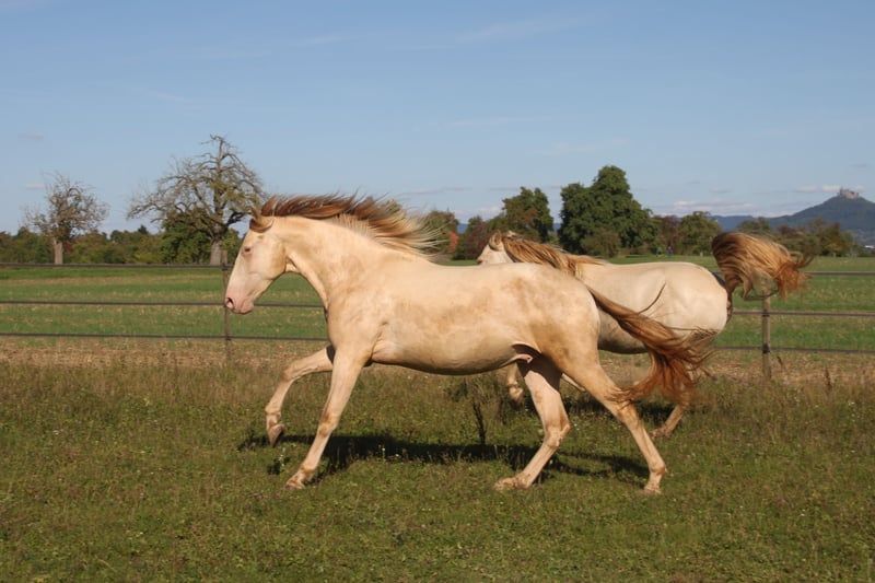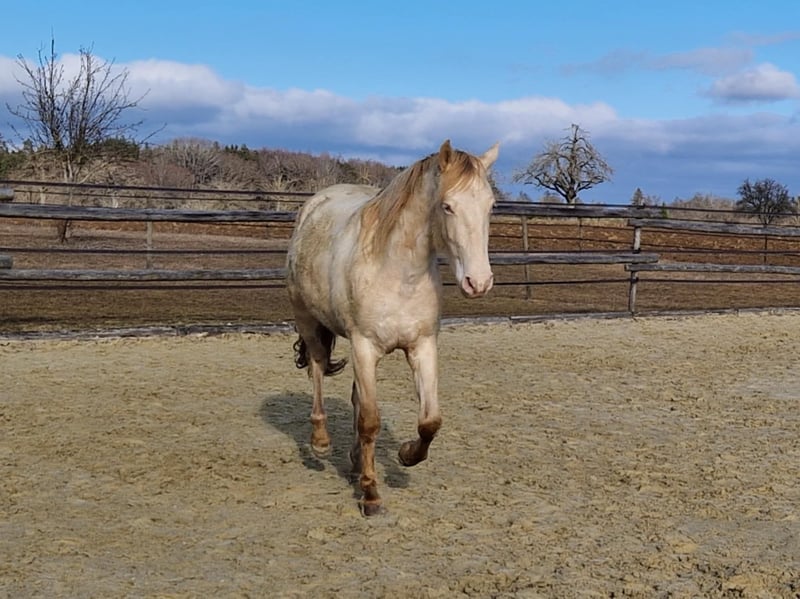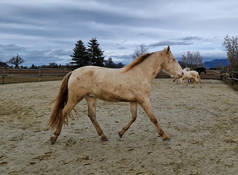 With his strong build, cream-colored coat, golden legs, and olive-green eyes, he captures everyone's attention. Lamperon was born on January 21, 2023, and has been raised with care. He has long legs, a short back, a beautiful topline, and above-average basic gaits with high, expansive movement. Last year, we had a breeder's check performed, and all 14 X-ray images showed no findings. Lampi is accustomed to regular handling such as haltering, grooming, washing, and hoof care, but is still unbroken. Of course, he has been regularly dewormed and tetanus vaccinated. If you are looking for a healthy, well-maintained young horse, Lampi will bring you great joy, fun, and success in all disciplines of classical riding. ANCCE papers. Private sale.