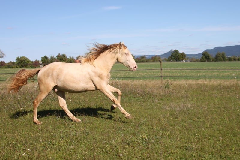 With his strong build, cream-colored coat, golden legs, and olive-green eyes, he captures everyone's attention. Lamperon was born on January 21, 2023, and has been raised with care. He has long legs, a short back, a beautiful topline, and above-average basic gaits with high, expansive movement. Last year, we had a breeder's check performed, and all 14 X-ray images showed no findings. Lampi is accustomed to regular handling such as haltering, grooming, washing, and hoof care, but is still unbroken. Of course, he has been regularly dewormed and tetanus vaccinated. If you are looking for a healthy, well-maintained young horse, Lampi will bring you great joy, fun, and success in all disciplines of classical riding. ANCCE papers. Private sale.