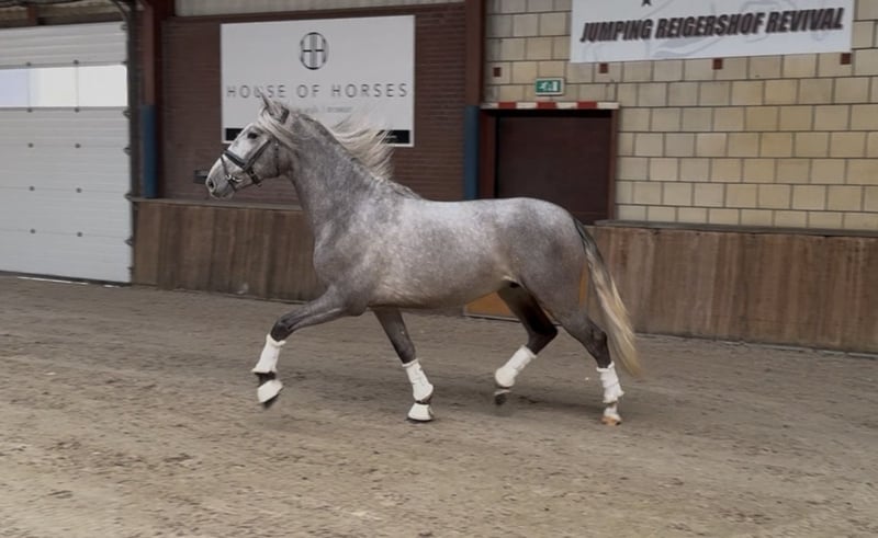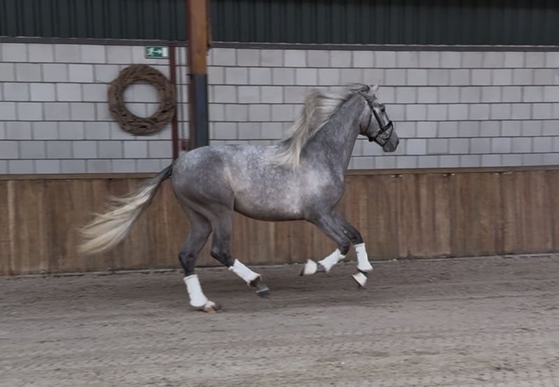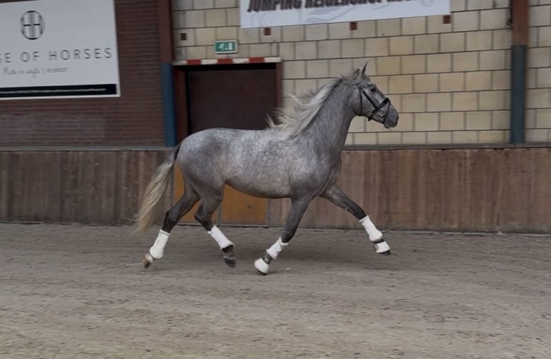 Are you looking for a real eye-catcher? A particularly talented horse with a complete presence: elegance, strength, and quality, combined with an outstanding pedigree (Bienvenido RJ x Jazminito V). Ruin, born on March 1, 2023, already stands out due to his striking appearance. With an current height of approximately 1.62 m (still growing), he is fully radiographically (including neck and back) and clinically approved. He possesses three very correct, well-moving gaits with suppleness, making him highly suitable for sport and leisure riding. In handling, he is reliable, calm, and easy to manage. Free of any stable vices. He is accustomed to lunging work and rider weight. Ready to start training. Further riding possible in consultation. Oud Gastel, NL 🇳🇱 0031-610197456