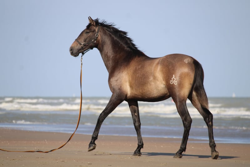 Baronet del Abadia was born to us on 26.02.2023 from our broodmare Gracia IV and Doblón-TR (last 4 photos). Baronet is a particularly beautiful and strongly built foal. He has a very good walk, an elastic trot and a spacious upward canter. He certainly owes those movements in part to his sire Doblón-TR, elite stud and son of Ermitaño III, first ever elite stud within the PRE. Baronet is a dynamic, athletic type. We see a very bright future for him in dressage. At the end of August, he won a gold medal in the 1-year-old stallion series at the Campeonato Centro Europeo in Bruges. There he received the best score for both morphology and movements. Baronet is a deaf horse, he is very respectful and willing to work. Trailer, farrier, vet etc. are no problem at all. Whoever wants to give him the time to develop and grow together with him will get a lot back from Baronet. More info via elabadia@telenet.be or +32(0)489361015. We are located in Belgium, region Veurne. Always welcome to visit our breeding farm !