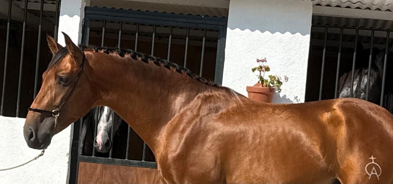 Hechicero W This beautiful gelding was raised in a herd in Spain and is well socialized. He was gently backed at the age of 3 and has been receiving ground training based on horsemanship principles for the past three months. Under saddle, he is highly motivated across all gaits, consistently reliable and well-behaved at all times. He has no vices. He is mentally clear, very people-oriented, and his striking copper coat makes him a real eye-catcher. Additionally, he has undergone a thorough veterinary check, with an unremarkable clinical health examination and 18 radiographs (also normal) available. Sounds exciting? Feel free to get in touch 🙋🏼♀️ A viewing and test ride are available for €35, which will be deducted from the purchase price if you decide to buy.