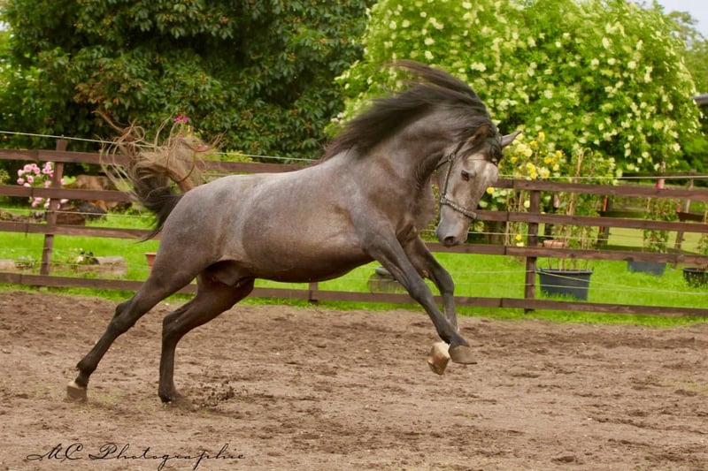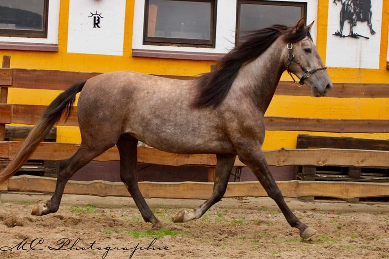 **Sale ad: Elegant PRE stallion in his prime** For sale is an impressive PRE stallion, born in 2022. This young gray stallion impresses with his elegant appearance and a height of 157 cm. He already shows great talent and potential in dressage. **Characteristics:** - Breed: Pura Raza Española (PRE) - Sex: Stallion - Year of birth: 2022 - Color: Grey - Height: 157 cm - Discipline: Dressage This stallion is not only an eye-catcher, but also a promising partner for ambitious dressage riders. If you are interested and would like further information, please do not hesitate to contact us.