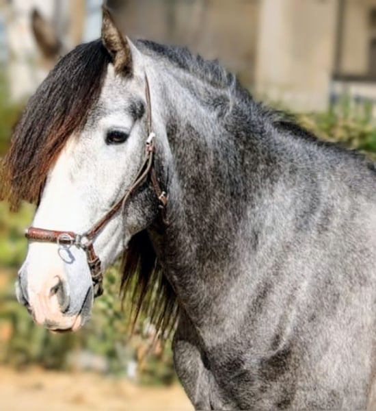 Auf Papieren kann man nicht reiten, sagt man… aber die Papiere kann man diesem edlen Traumpferd ansehen. Der junge Wallach (bereits vor Ort kastriert worden) DIGITAL G verrät seine edle Herkunft durch ein perfektes Gebäude, einen edlen Kopf und ausdrucksstarke Gänge. Ein reiner Granda (Gestüt Granda Losada) gezogener junger PRE mit ganz großen Namen im Stammbaum! Dieses Gestüt steht für Eleganz, Bewegungsqualität und Funktionalität. Der junge Wallach ist professionell auf Wassertrense in den GGA. angeritten und befindet sich weiterhin im Training. Charakterlich zeigt er sich intelligent, aufgeschlossen und lernwillig. Er geht auch bereits gut alleine und in der Gruppe ins Gelände. Er wird sicherlich noch ein paar Zentimeter wachsen, sodass das erwartete Endstockmass bei ca. 1,65m liegt. Volles ANCCE-Papier. Standort Dänemark.
