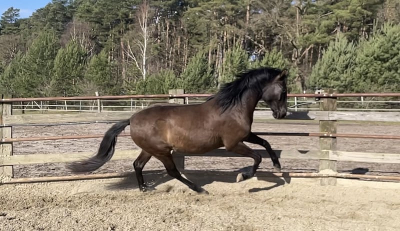 Schwerensherzens biete ich meinen selbstgezogenen 4-jährigen PRE-Wallach zum Verkauf an (Verfügung auch denkbar). Cisco ist im Mai 2022 geboren und hat als Fohlen auf meinem Schoß geschlafen, dementsprechend ist er unglaublich menschenbezogen. Als Fohlen ist er mit seiner Mutter einfach mitgelaufen, und hat so „beiläufig“ Kontakt zum Putzen, Anhänger, Spazieren… etc. gehabt. Er wurde ausschließlich im Offenstall gehalten: das erste Lebensjahr hat er in einer gemischten Herde verbracht. Mit einem Jahr ging er in eine Hengstaufzuchtherde für 1,5 Jahre. Seit dem steht er in einer Wallachherde. Er war stets ein Mittelglied und hat sich unkompliziert in eine Herde eingefügt. Cisco ist ein echtes „Schoßpferd“, er kommt immer als erstes an und sucht aktiv den Kontakt zu Menschen. Für sein Alter ist er wahnsinnig gelassen und neugierig. Das Sprichwort „mittendrin statt nur dabei“ hat er für sich ganz neu interpretiert! Einiges hat er schon kennengelernt: auf dem Spaziergang sind Hunde, Katzen, Hühner, Schafe, Feldsprenger, Fahrradfahrer, Autos, Brücken, Unterführungen… kein Problem. Auf dem Trail hat er sich auch von der besten Seite gezeigt, da absolviert er völlig unbeeindruckt unterschiedliche Aufgaben. Aktuell ist er bereits in allen Gangarten anlongiert, demnächst wird er den Reitpad kennenlernen. Anhänger und Schmied sind kein Thema. Er hat keinerlei schlechte Manieren wie Beißen, Steigen oder Bocken! Kurzum: er wird mal ein ganz tolles Verlasspferd sein, der mit einem durch dick und dünn geht! Leider habe ich längerfristig nicht die Zeit, ihm die Aufmerksamkeit zu geben, die er braucht und verdient. Ich suche für ihn ein langfristiges artgerechtes Zuhause, wo er Pferd und Partner sein darf. Aktuell ist er noch im Wachstum, daher ist noch nicht an intensiven Reiteinheiten zu denken. So hat man aber als zukünftigen Besitzer die Chance, mit ihm auf diese besondere Art zusammenzuwachsen, die die Ausbildung des eigenen Pferdes mit sich bringt. Schätzungsweise wird er ca. 160-165cm groß. Farbe ist mutmaßlich smokey black (schwarz + Aufhellung - Vater Rappe, Mutter Falbe). ANCCE Papiere vorhanden Fragen werden gerne beantwortet!