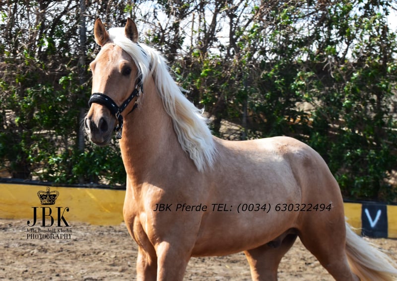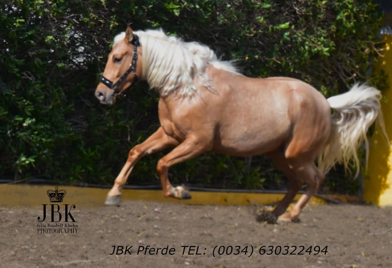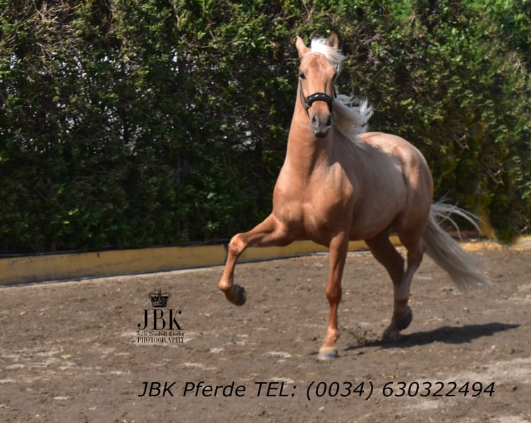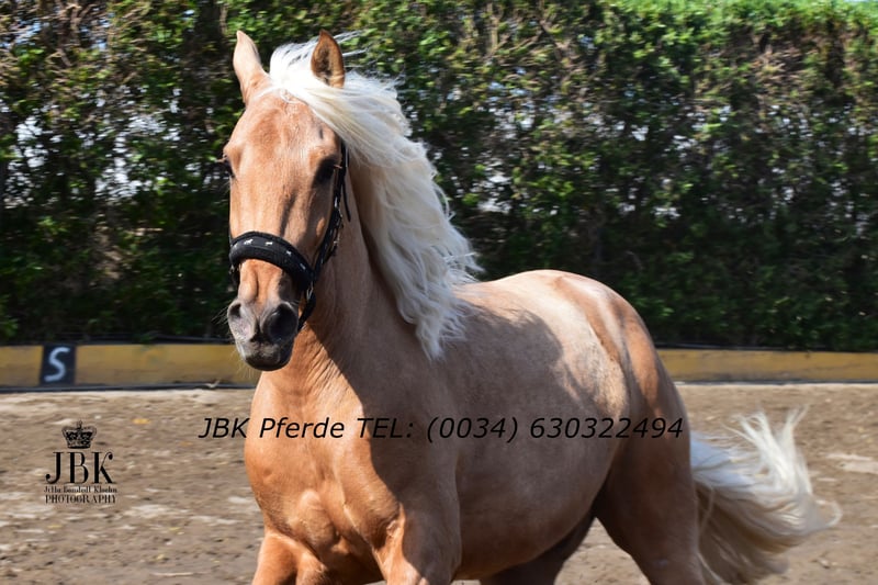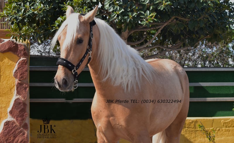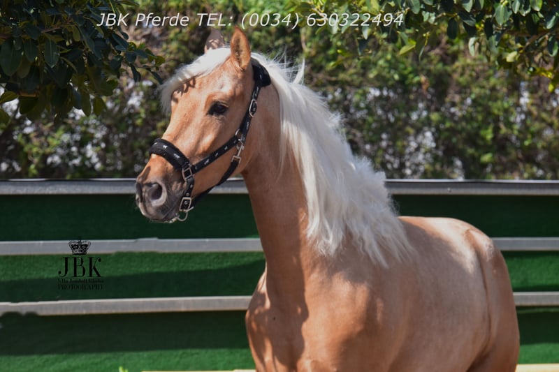 Ein PRE Wallach zum Verlieben: Boomerang wurde am 01.01.2022 geboren. Er wurde Anfang 3 jährig in einer Klinik kastriert. Boomerang ist ein sehr intelligentes Pferd mit einer raschen Auffassungsgabe. Er zeigt sich ausserdem super wendig, und hat die Veranlagung für die spätere Working Equitation. Aber auch für die Dressur und das barocke Reiten wird er geeignet sein. Er ist in den Grundgangarten gut geritten und kennt auch die Arbeit am Langzügel vom Boden aus. Boomerang hat erstklassige Blutlinien. Remsche XXIII aus dem Fraga Gestüt ist calificado gekört und ebenso trägt er das Prädikat " Verbesserer seiner Rasse". Mit Marin Garcia, Lovera, Paco Marti, Bravo Martinez und Escalera wird die Blutlinie super abgerundet. Er ist in ANCCE ein eingetragener Perla (Palomino) Als Hengst war er ebenso gekört. Er hat ein Stockmass von derzeit 1, 65 m, und er wächst natürlich noch bis etwa 7 jährig. Ein edler Rohdiamant. Boomerang hat 16 Röntgenbilder ohne Befund. Pirofree!!!