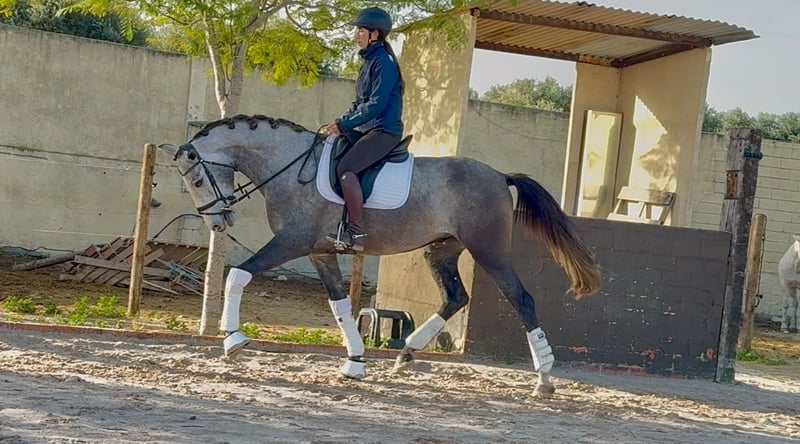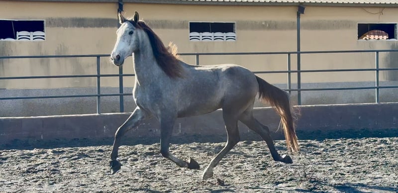 Beautiful horse for sale! We are offering a stunning gelding born in 2021. With a grey coat and standing at 16.1 hh, he is ideal for riders seeking a well-sized and impressive horse. Specializing in dressage, this horse has an excellent attitude for work and training in this discipline. Perfect for riders looking for a reliable partner with potential to develop further in dressage. Feel free to contact us for more information and to arrange a visit.