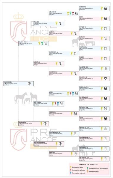 Mogelijkheid om een schitterende hengst aan te schaffen! Er wordt een prachtig PRE-paard aangeboden, een barokke ras, geboren in 2022. Dit exemplaar valt op door zijn indrukwekkende hoogte van 180 cm, ideaal voor wie op zoek is naar een groot en imposant paard. De kastanjekleur geeft het paard een elegante en onderscheidende uitstraling. Deze hengst combineert schoonheid, nobelheid en potentieel. Mis deze kans niet om een uitzonderlijk exemplaar aan uw stal toe te voegen. Dressuur: halstertraining; eerste contactmomenten met zadel. Werk met singel en vaste teugels. Opmerkingen: veulen met veel hoogte en bot, nobel karakter; intelligent. Lijnen: Rumex, Corzo IV, Deco, Velero XI, Lebrijano III, Lego, Cepellón, Colombiano III. Ventura Camacho, Granda, Yeguada Militar, Vizconde de la Montesina, Romero Benítez, Bohorquez. Voor meer informatie en details neem gerust contact met ons op.