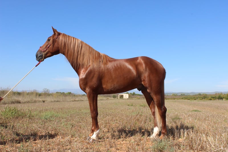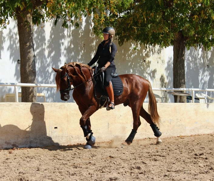 Maak kennis met Tango, een prachtige PRE-gelding met een kastanjekleurige vacht en een zijdeachtige, lange manen. Hij is 4 jaar oud en is zorgvuldig en doordacht gestart door een vrouwelijke ruiter en trainer. Momenteel staat hij op een druk terrein, waar hij zich perfect gedraagt tussen andere paarden, honden, katten, kinderen en alle bijbehorende geluiden. Hij is snaffle-mond, en onder het zadel beschikt hij over drie goed gebalanceerde gangen in de arena, passend bij zijn leeftijd. Daarnaast rijdt hij ook buiten in het landschap met andere paarden. Hij is gemakkelijk te verzorgen, niet schrikachtig, bijt, trapt of wiebelt niet. Ideaal voor een vrouwelijke ruiter die op zoek is naar een gezond, jong paard met alle basisvaardigheden al ontwikkeld. Hij is gestart met dressuur in gedachten, maar zou even goed geschikt kunnen zijn voor andere vrijetijdsactiviteiten. Een zeer verstandig paard, met uitgebreide video’s beschikbaar.