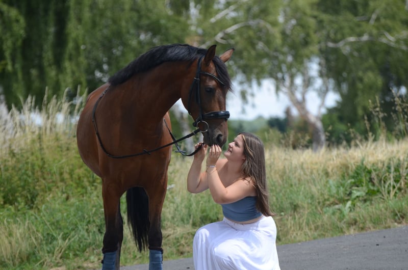 Deze adembenemende 4-jarige Andalusische ruin (161 cm) trekt gewoon iedereen in zijn ban. Wie hem eenmaal heeft meegemaakt, zal hem niet meer vergeten - beloofd! Een allrounder met wow-factor Of het nu in de dressuur is, tijdens de dagelijkse training of gewoon als trouwe metgezel - deze charmeur combineert talent met absolute betrouwbaarheid. Fijn te rijden, altijd gefocust en uitgerust met een natuurlijke elegantie die hem een heel bijzondere aanwezigheid geeft. Zijn hoogtepunten: ✅ Dressuurtalent met sterpotentieel - expressieve gangen en een indrukwekkende leergierigheid maken hem tot een echte diamant. ✅ 100% vertrouwen - Of het nu op de bak, in de hal of buiten is - deze schat blijft altijd kalm en bij zijn mens. ✅ Röntgenfoto's? Natuurlijk actueel en zonder bevindingen, dus de beste voorwaarden voor een lange en gezonde toekomst. ✅ Een echt betrouwbare paard met hart en verstand. ✅ Droomachtig exterieur & elegante bewegingen - Wie stijl en schoonheid zoekt, vindt hier wat hij zoekt. Een partner voor het leven Als je op zoek bent naar een paard dat niet alleen getalenteerd, betrouwbaar en prachtig is, maar ook een gouden ziel heeft, dan zou hij wel eens degene kunnen zijn waar je op hebt gewacht. Klaar voor een verbinding die je nooit meer zult vergeten? Neem dan contact op en leer Felisucan kennen - hij wacht op JOU!
