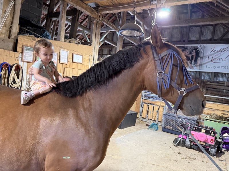 Ce magnifique hongre andalou de 4 ans (1,61 m) ne laisse personne indifférent. Une fois que vous l'avez rencontré, il devient impossible de l'oublier – c'est promis ! Un polyvalent avec un effet « wow » Que ce soit en dressage, lors de l'entraînement quotidien ou simplement comme compagnon fidèle, ce charmeur allie talent et fiabilité absolue. Facile à monter, toujours attentif et doté d'une élégance naturelle qui lui confère une présence particulièrement remarquable. Ses points forts : ✅ Talent en dressage avec un potentiel de star – Des allures expressives et une grande soif d'apprendre en font une véritable pépite. ✅ Confiance à 100 % – Que ce soit en piste, en manège ou en extérieur, ce trésor reste toujours calme et fidèle à son cavalier. ✅ Radiographies disponibles ✅ Un véritable cheval de confiance, doté d’un cœur et d’un esprit exceptionnels. ✅ Exterieur de rêve & mouvements élégants – Si vous recherchez style et beauté, vous êtes au bon endroit. Un partenaire pour la vie Si vous cherchez un cheval non seulement talentueux, fiable et magnifique, mais aussi doté d’une âme d’or, il pourrait bien être celui que vous attendiez. Prêt pour une connexion que vous n’oublierez jamais ? Contactez-moi et faites la connaissance de Felisuco – il vous attend !