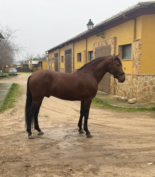 For sale is this charming bay gelding, born in 2021. He currently measures 16.2 hh. This young gelding is a promising horse for riders seeking a willing partner who wants to develop further in dressage, working equitation, or upscale leisure riding. If interested, we look forward to hearing from you.